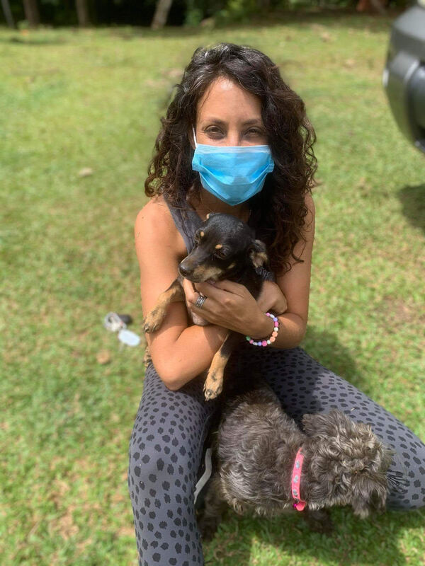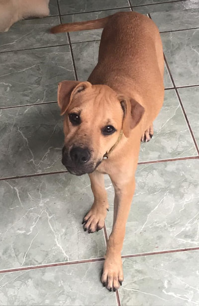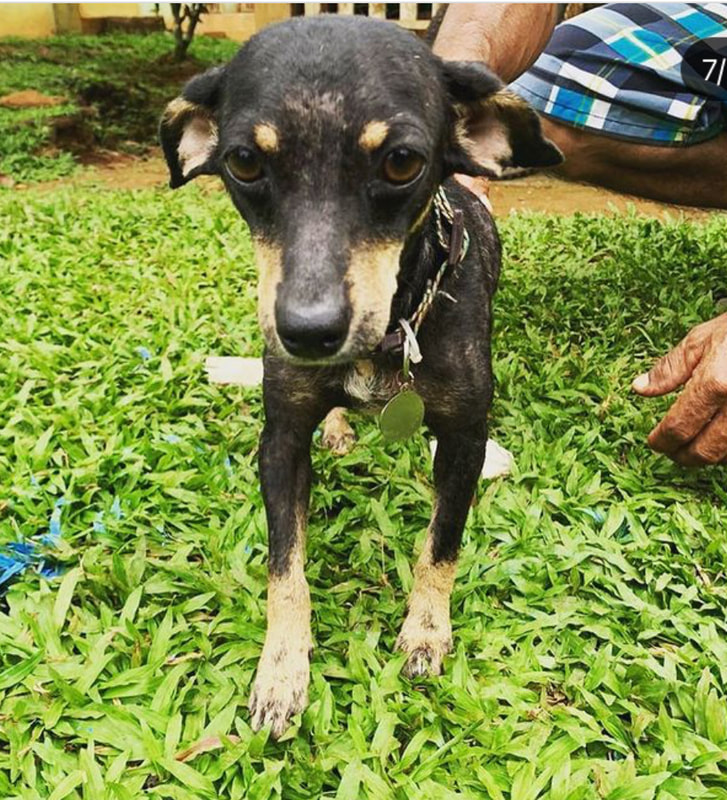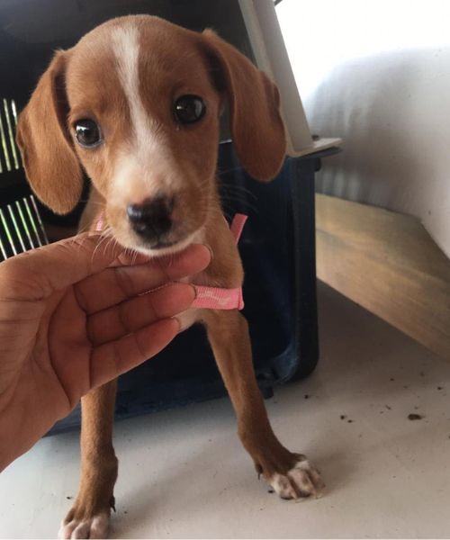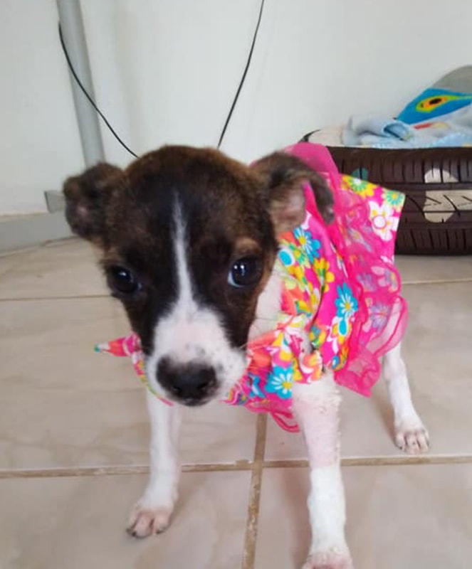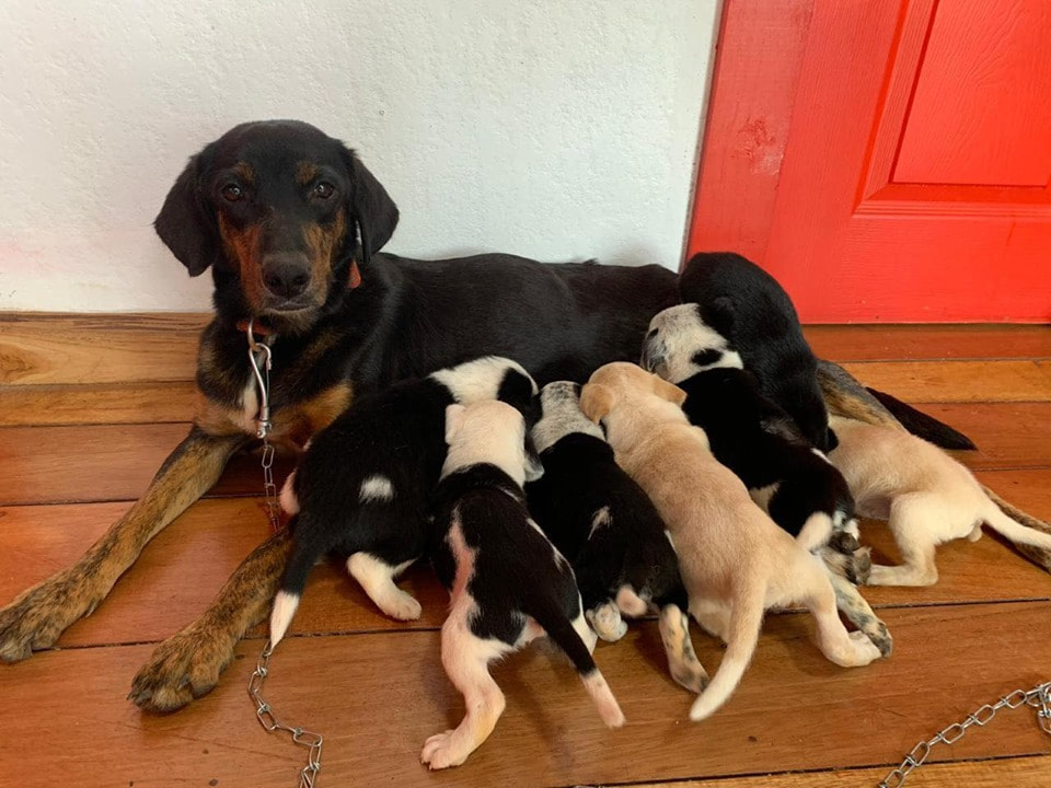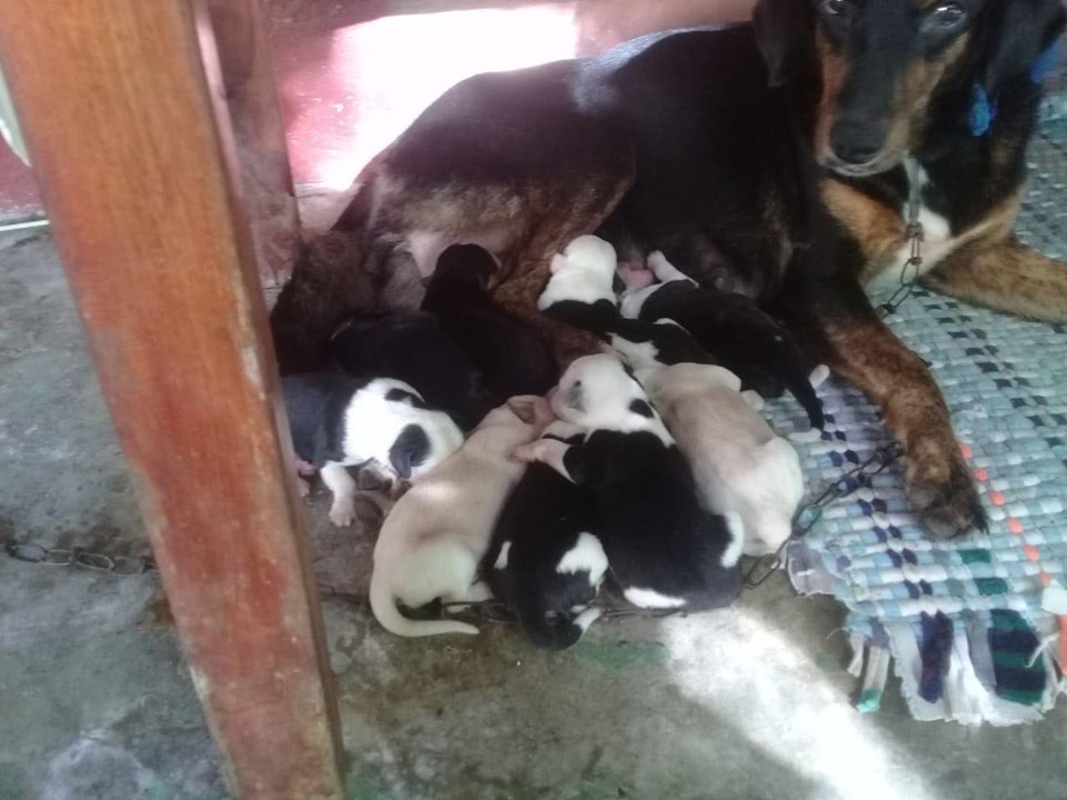 This mama dog showed up on the beach, pregnant. She gave birth on the property of a local lady who then contacted us for help. We were able to take the mama and pups to one of our foster homes where she and the pups could get the care they needed.