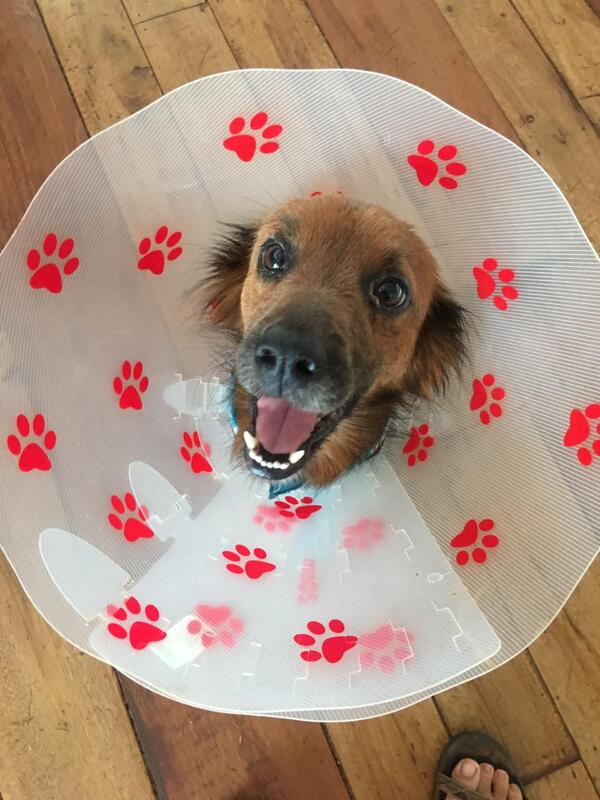 After his long recovery with us, he was adopted to be the in-house dog at a senior center in San Jose. Look at how big and fat he has gotten.