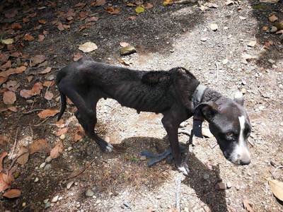 Above are three large female dogs who were probably used as breeder dogs and then dumped. Each pictured on the the day we found them and then on the day they were spayed. βAll three were adopted out by PAWS.