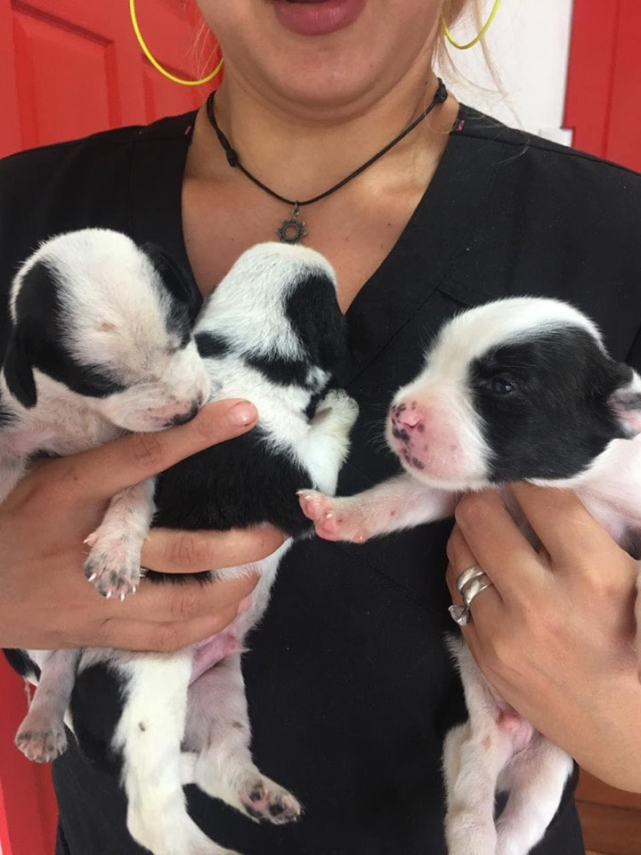 Coordinating with PAWS, the pups were brought to a local vet for care and then they were moved to a PAWS foster home. Their recovery was a long one, but in the end, both mama and pups went in adoption β happy and healthy and spayed and vaccinated.