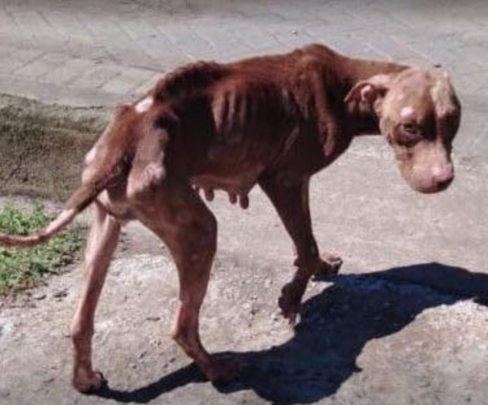 When the police came across this mama and her two pups at an abandoned house, they knew they had to act. Mama was starving, and all three were riddled with fleas and worms.